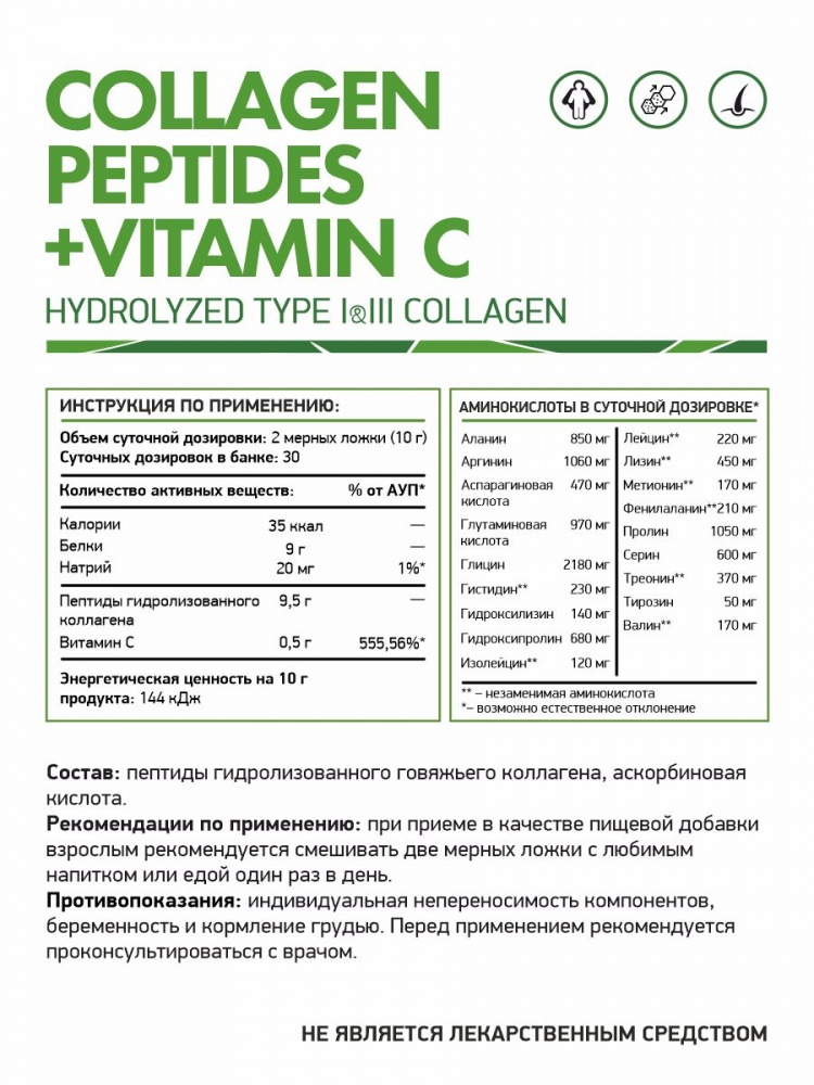 Интернет-магазин Body-Pit.Life предлагает купить Коллаген NaturalSupp Collagen peptides+ Vitamin C 300 гр в Нерюнгри.