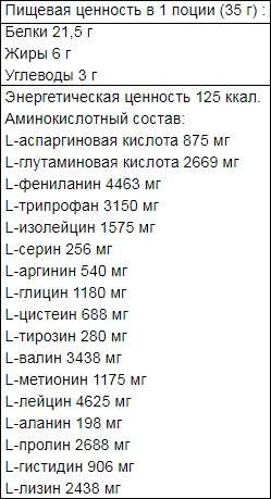 Применение: Для приготовления протеина необходимо смешать одну мерную ложку продукта 250-350 мл воды или молока.