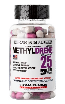 Жиросжигатель содержит смесь мощных компонентов ЭКА (эфедра, кофеин и кора белой ивы), которые действуют синергически, то есть усиливают эффект друг друга. Вместе эти компоненты намного эффективнее, чем отдельно, что делает жиросжигатель Cloma Pharma Methyldrene Elite одним из самых мощных.