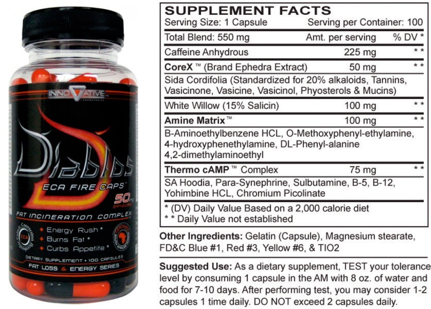 - В Diablos ECA содержаться только натуральные стимуляторы, которые не воздействуют негативного влияния на нервную систему;