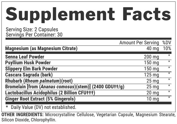 Рекомендуемое использование: Принимать по 1 порции (2 капсулы) утром во время еды, запивая 8-10 унциями воды. Если желателен более сильный эффект, можно принять дополнительную порцию (2 капсулы). Используйте в качестве 7-дневной системы быстрого очищения и детоксикации. Не принимайте дольше 7 дней подряд. Может также использоваться для облегчения периодического дискомфорта после еды и вздутия живота. Употребляйте не менее 10 стаканов воды в день.