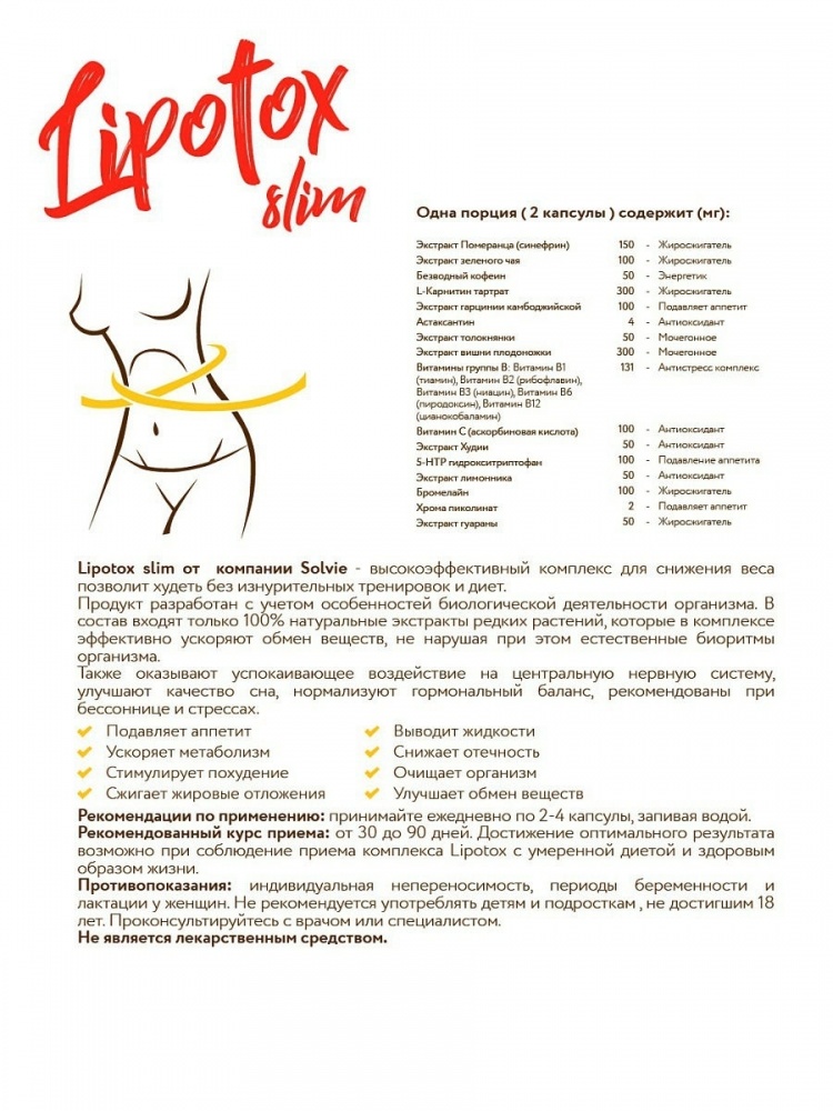 Lipotox от Solvie — комплекс для эффективного снижения веса на основе растительных экстрактов.