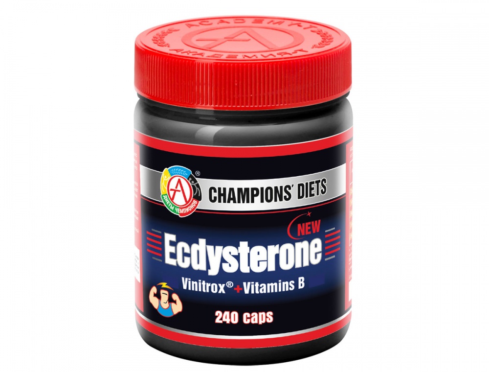 Ecdysterone – усовершенствованная форма препарата, полученного из корневищ Левзеи Сафроловидной (Leuzea carthamoides), способствующая выработке тестостерона, увеличивающая рост мышечной массы, позволяющая повысить силу и выносливость. В состав препарата входят витамины группы В, которые дополняют и активируют действие экдистерона, усиливают синтез аминокислот, гемоглобина и ферментов.