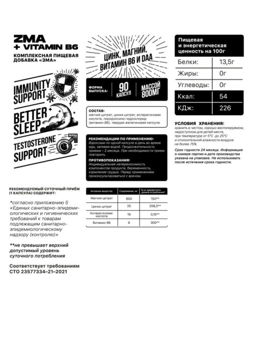 Тестобустер Biohacking Mantra ZMA+B6 90 капсул