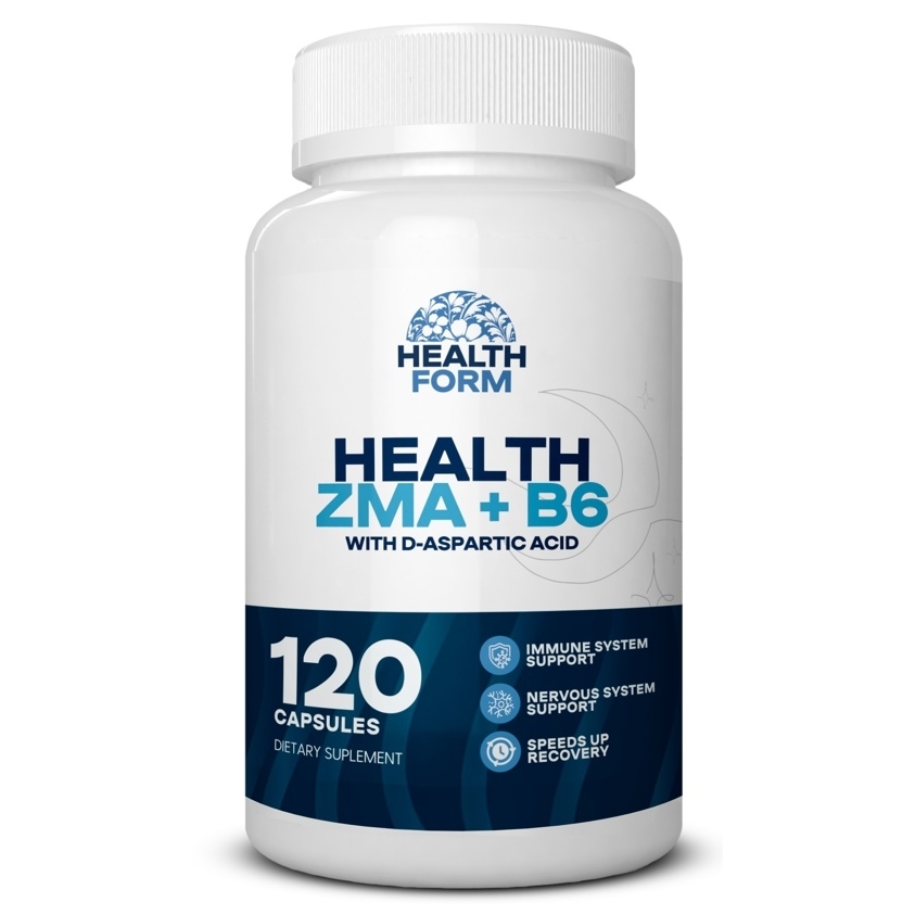 HEALTH ZMA+B6 от HEALTH FORM - это источник минералов цинка и магния с аспарагиновой кислотой и витамином B6 в капсулах.