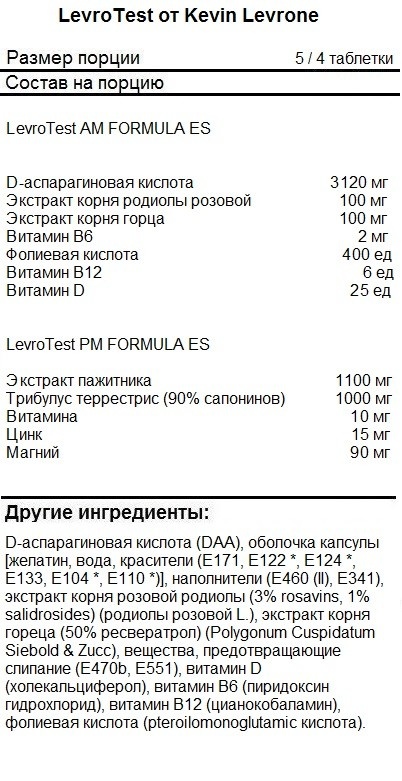 D-аспарагиновая кислота — стимулятор секреции тестостерона.Родиола Розовая — обладает успокаивающим воздействием. Помимо прочего пополняет энергозапасы и стабилизирует сердечнососудистую деятельность.