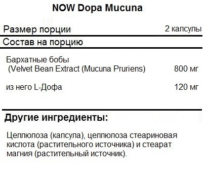 Дофамин — это нейромедиатор, который вызывает удовольствие и интерес к жизни. Средство NOW® Dopa Mucuna, в котором содержится 15% L-дигидроксифенилаланин (непосредственный предшественник дофамина), помогает организму получать все необходимое для выработки этого важного нейромедиатора. Мукуна используется в традиционной аюрведической системе Индии несколько тысяч лет.
