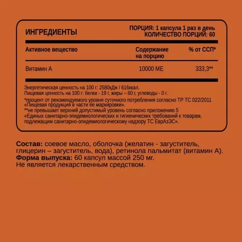 Аминокислота CHIKALAB Ретинол (Витамин А) 60 капсул