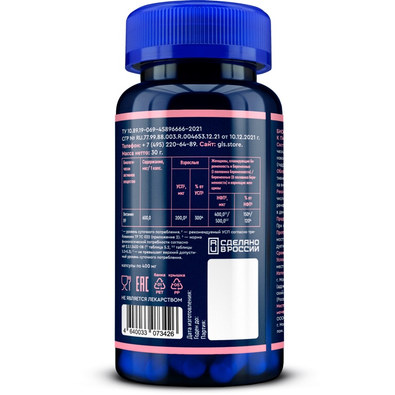 Интернет-магазин Body-Pit.Life предлагает купить Фолиевая кислота GLS Pharmaceuticals 600 мкг 60 капсул в Нерюнгри.