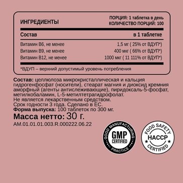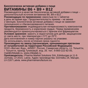 Витамины CHIKALAB В6 +В9 +В12 100 таблеток