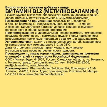 Интернет-магазин Body-Pit.Life предлагает купить Витамины CHIKALAB Витамин В12 60 таблеток в Нерюнгри.