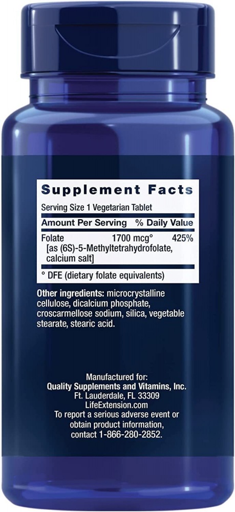 Витамины Life Extension L- MethylFolate 100 таблеток
