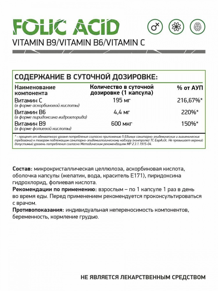 Интернет-магазин Body-Pit.Life предлагает купить Витамины NaturalSupp Folic Acid 60 капсул в Нерюнгри.
