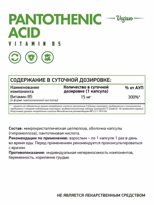 Интернет-магазин Body-Pit.Life предлагает купить Витамины NaturalSupp Pantothenic Acid (vitamin B5) 60 капсул в Нерюнгри.
