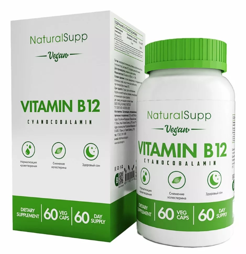 Интернет-магазин Body-Pit.Life предлагает купить Витамины NaturalSupp Vitamin B12 Cyanocobalamin 60 капсул в Нерюнгри.