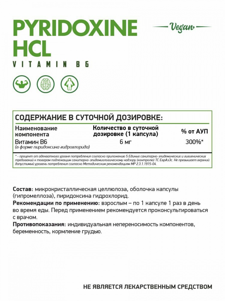 Интернет-магазин Body-Pit.Life предлагает купить Витамины NaturalSupp Vitamin B6 PYRIDOXINE HCL 6 мг 60 капсул в Нерюнгри.