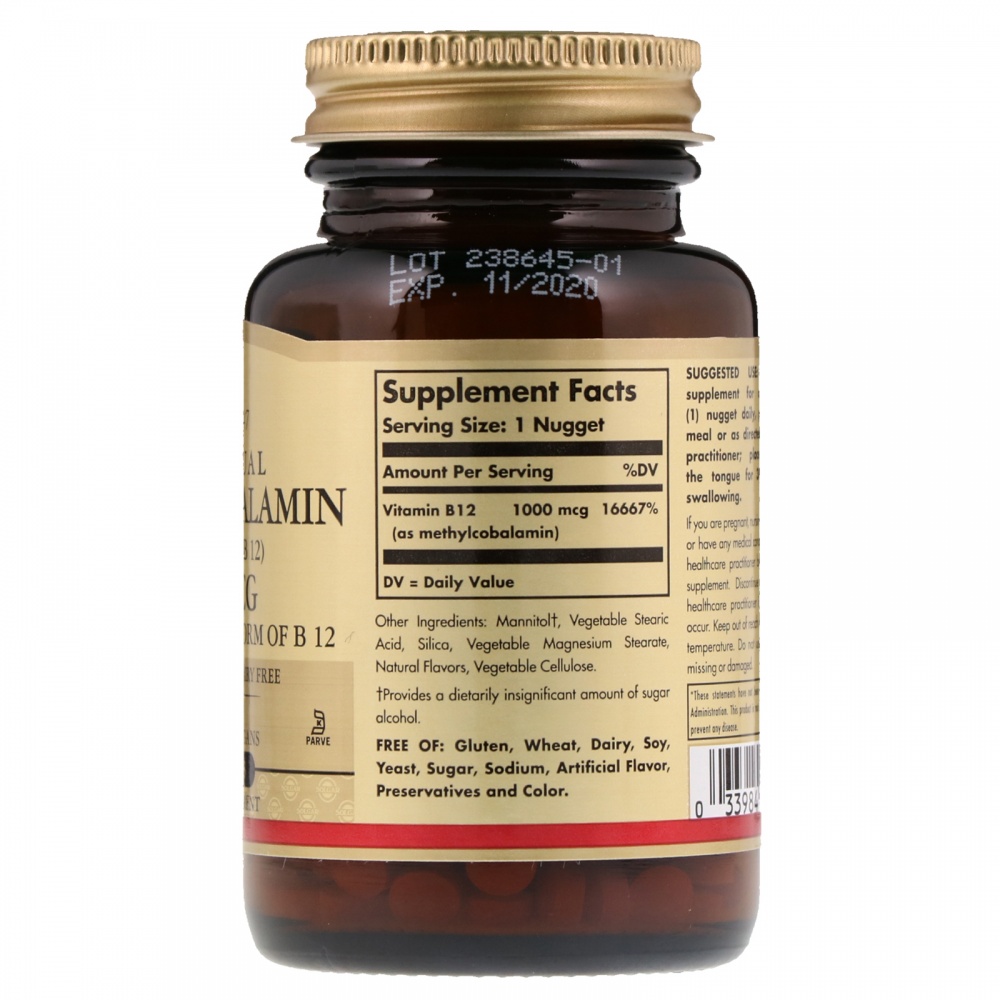 Витамин B12 (в виде метилкобаламина): 1000 мкг
