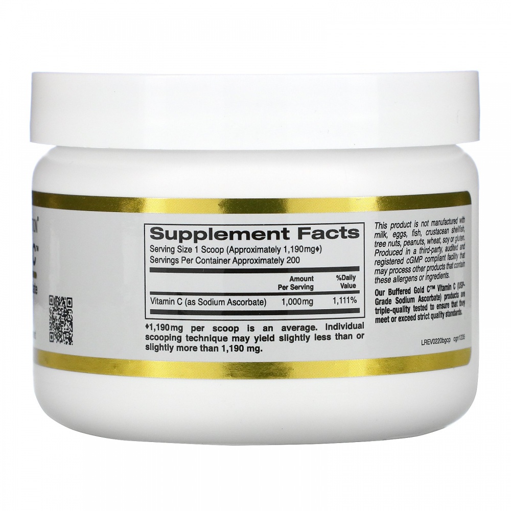 Buffered Gold C от California Gold Nutrition представляет собой некислую форму витамина С в форме аскорбата натрия. Буферизованный витамин С в форме порошка — это простой и экономичный способ получить индивидуальную дозу витамина С для людей с чувствительной пищеварительной системой. Buffered Gold C можно смешивать с водой, соком или другими напитками.