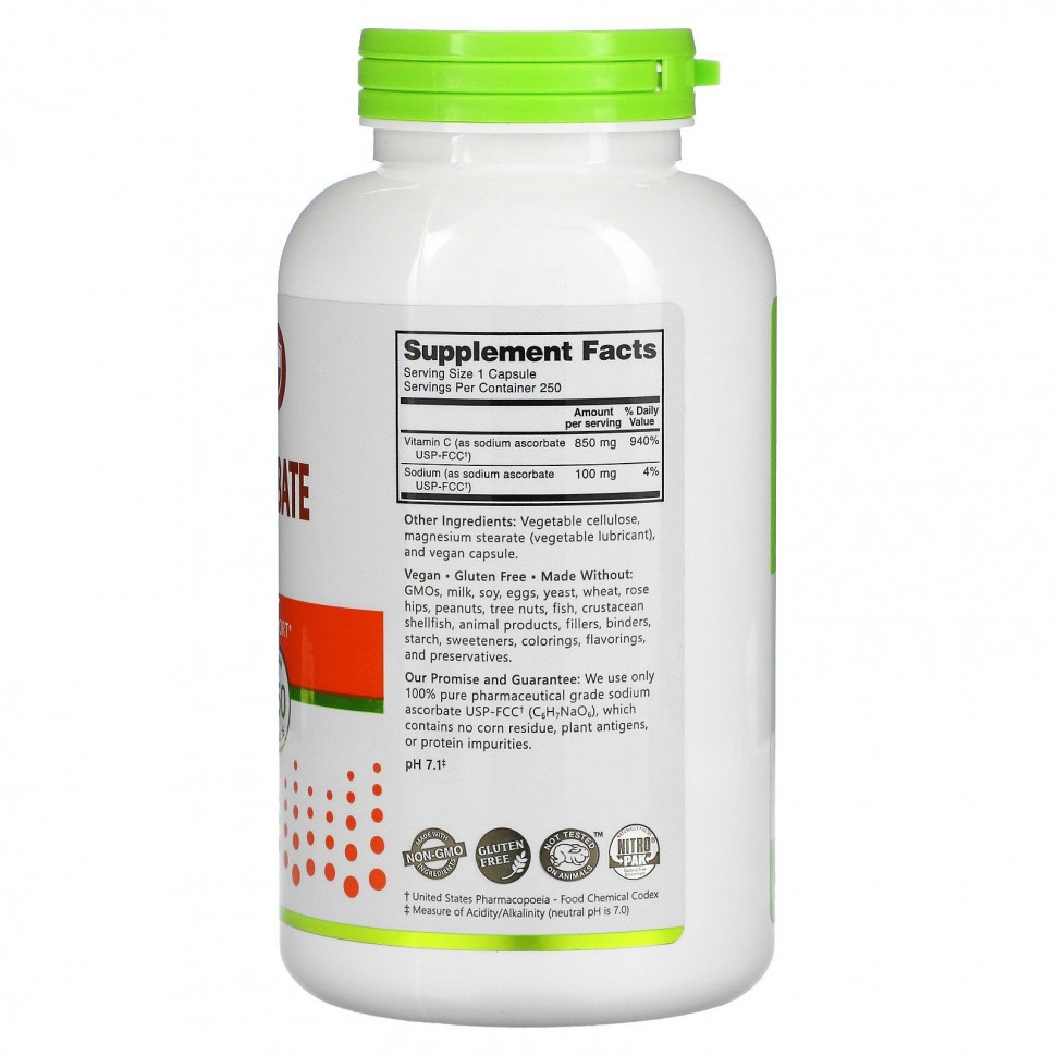 | Витамин С (в виде аскорбата натрия USP-FCC): | 850 мг |