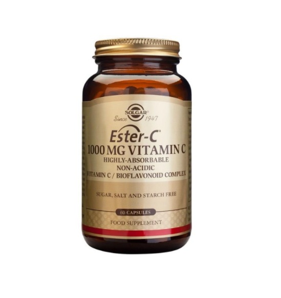 Ester-C Plus — продукт, разработанный Solgar, обеспечивает запатентованным, рН-нейтральным (не кислотообразующим) витамином С, который не вреден для желудка. Метаболиты витамина С в Ester-C положительно влияют на сохранение витамина С в клетках, обеспечивая дополнительные преимущества. Применяется специальный процесс для формирования уникального метаболитного комплекса аскорбата кальция. Это комплекс полезен антиоксидантами, поддерживает иммунную систему, включает природные биофлавоноиды, ягод ацеролы и порошок плодов шиповника.