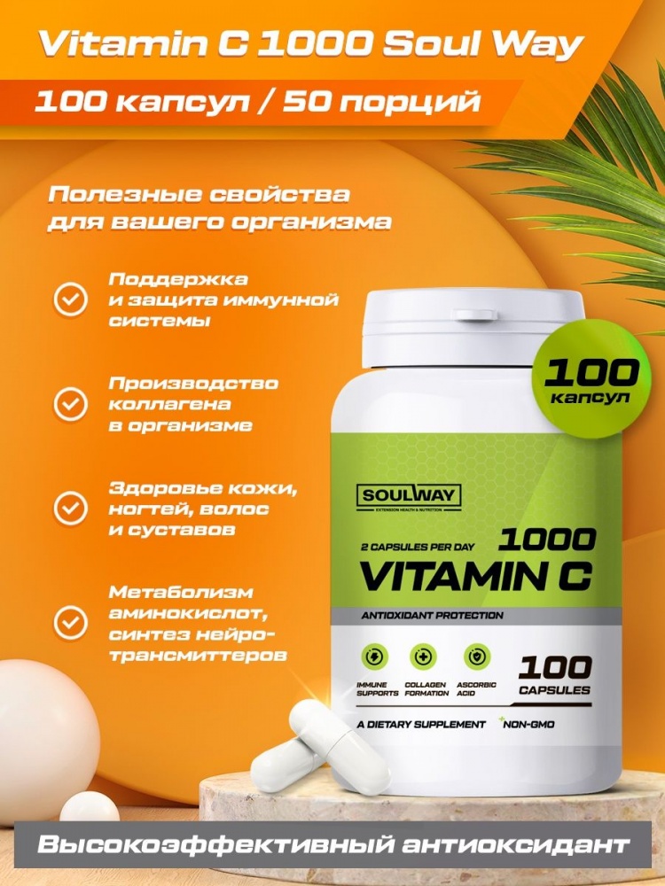 Интернет-магазин Body-Pit.Life предлагает купить Витамины SoulWay Vitamin C 1000 мг 100 капсул в Нерюнгри.
