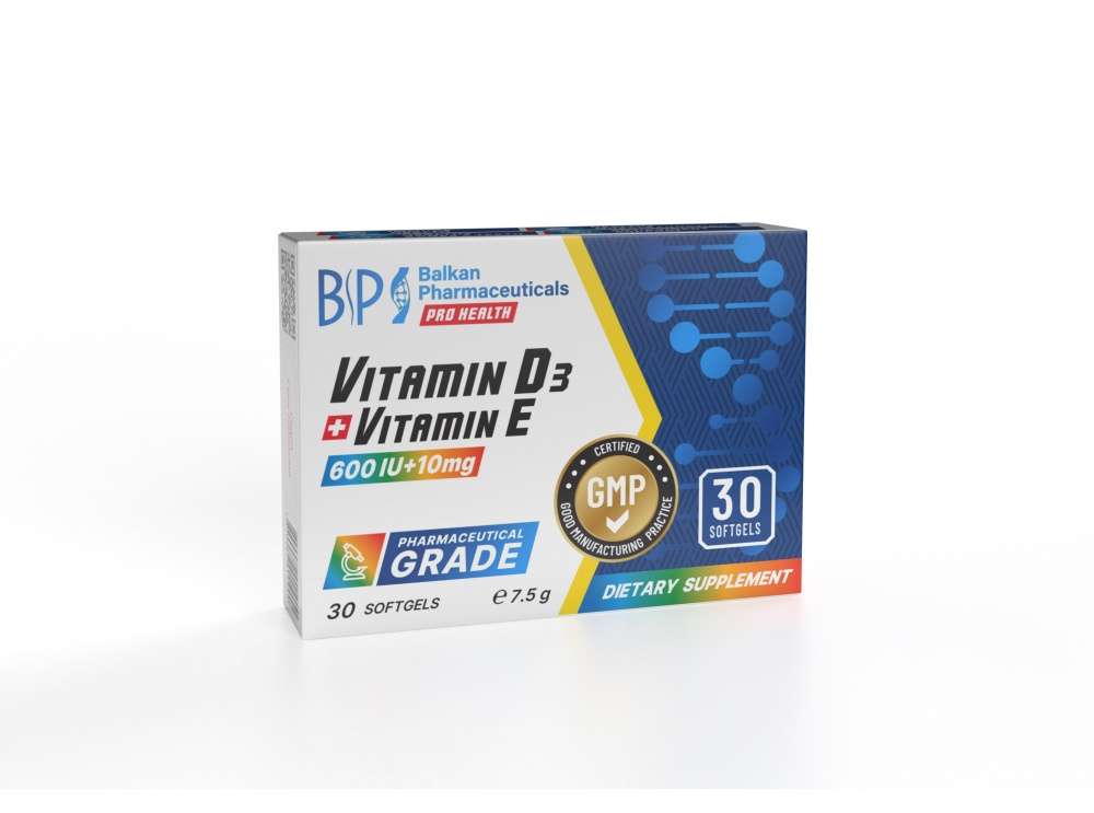 Витамины Balkan Pharmaceuticals Vitamin D3 + Vitamin E 30 капсул