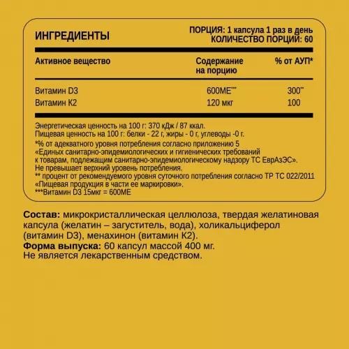 Витамины CHIKALAB Витамин D3+K2 60 капсул