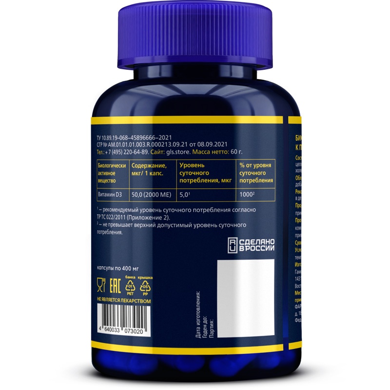Интернет-магазин Body-Pit.Life предлагает купить Витамины GLS Pharmaceuticals Vitamin D3 2000 ME 120 капсул в Нерюнгри.