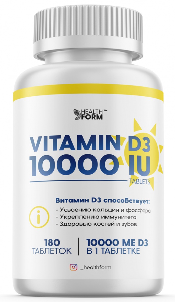 Vitamin D3 10000 IU от HEALTH FORM - это источник витамина D3 (холекальциферола) в таблетках.