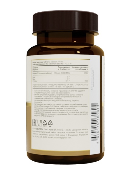 Холекальциферол (витамин D3): 125 МКГ (5000 МЕ)