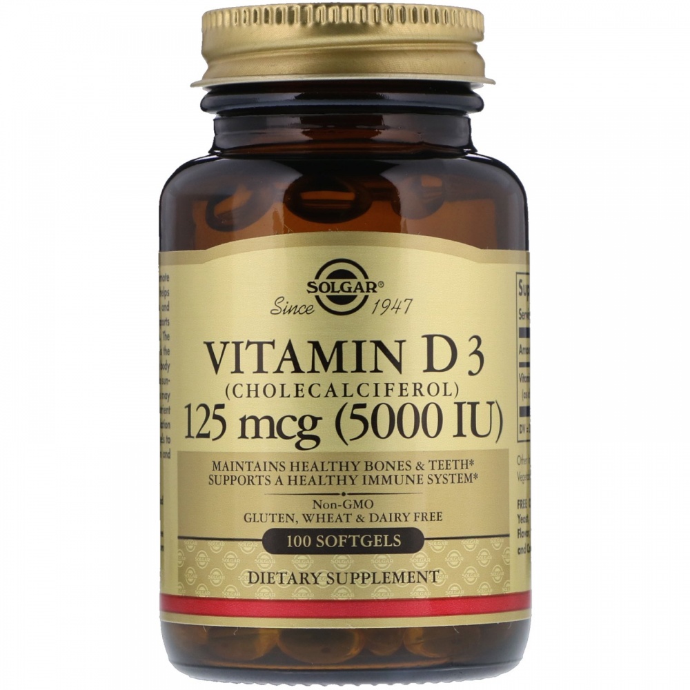 Витамины Solgar Натуральный Витамин D3 5000 МЕ 100 таблеток