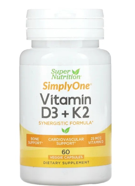 И витамин D, и витамин К являются незаменимыми питательными веществами, необходимыми для ведения здорового образа жизни. Витамины D3 и K2 SimplyOne от Super Nutrition объединяют оба витамина в единую синергетическую формулу, которая помогает поддерживать здоровье костей и сердечно-сосудистой системы.