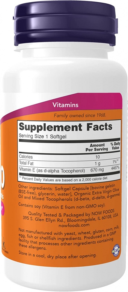 | Витамин Е (в виде d-альфа-токоферола): | 670 мг |