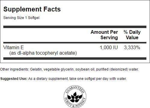 Витамин E (d-альфа токоферил ацетат): 1,000 IU