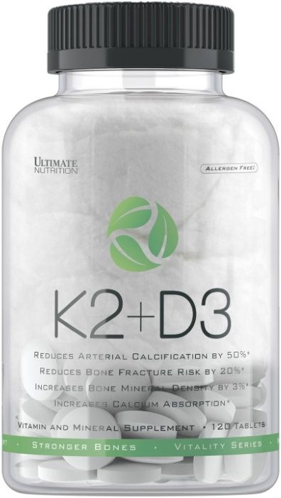 Формула витамина K2+D3 от Ultimate Nutrition включает в себя жизненно важное сочетание витамина D3 и витамина K2 .