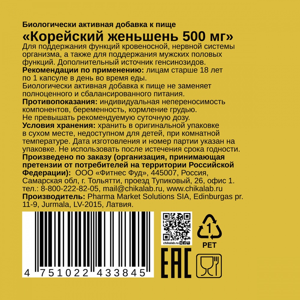 Интернет-магазин Body-Pit.Life предлагает купить БАД к пище Chikalab Корейский женьшень 60 таблеток в Нерюнгри.