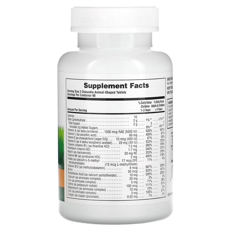 Рекомендации по применению: Детям от 2 лет следует принимать две жевательные таблетки один раз в день.