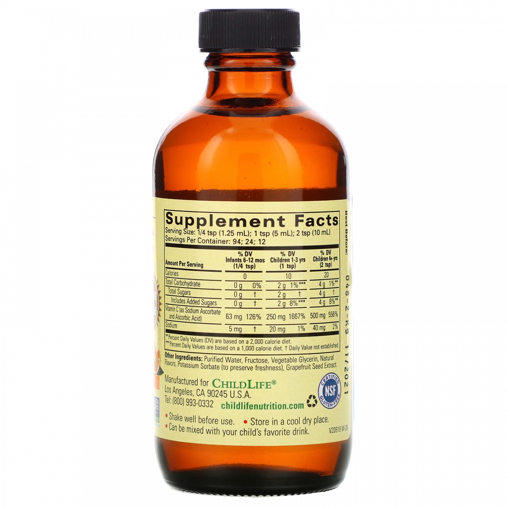 Витамин C от ChildLife — это жидкость с приятным натуральным апельсиновым вкусом, которую с удовольствием будут принимать дети любого возраста.