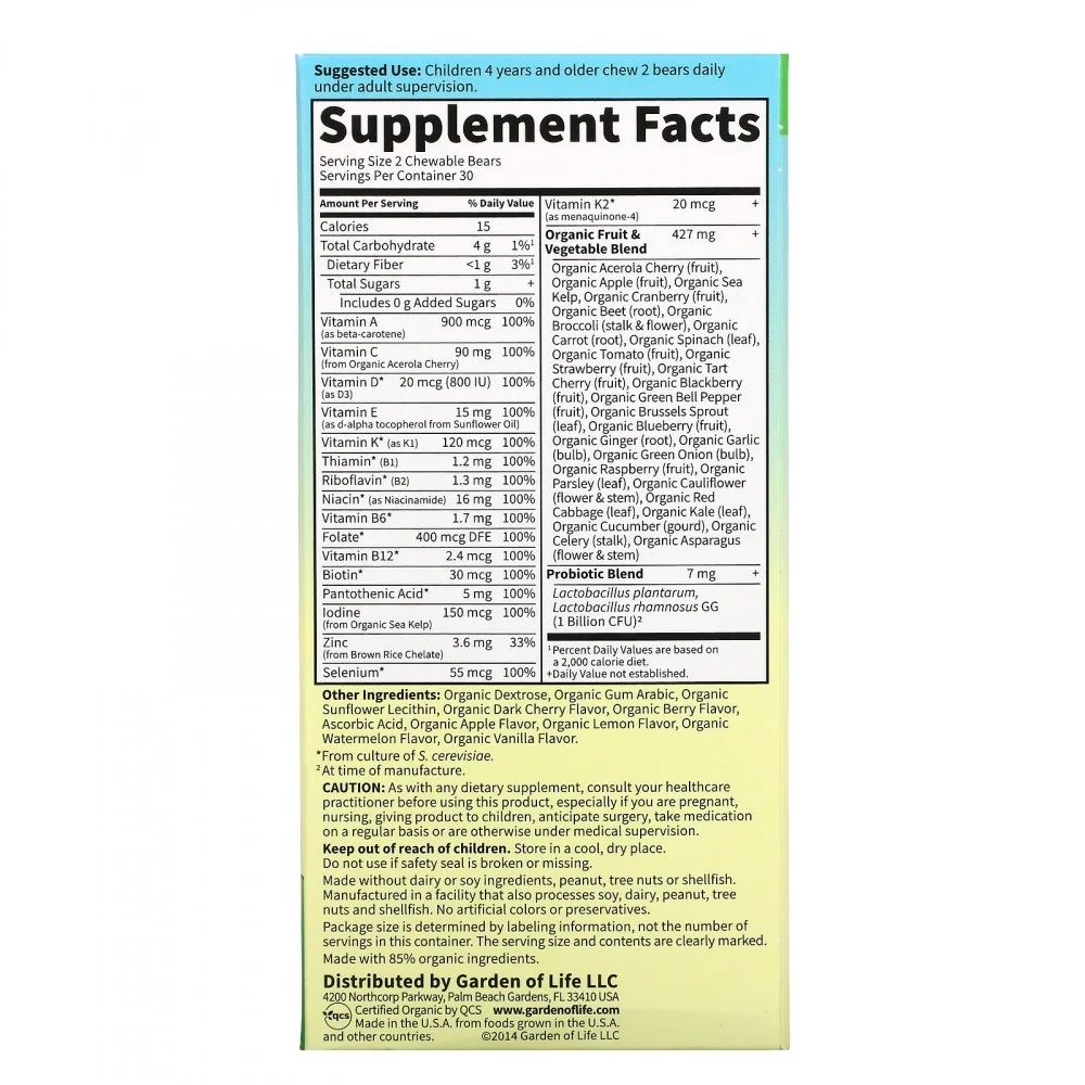 Витамины Garden of Life Vitamin Code Kids 60 таблеток