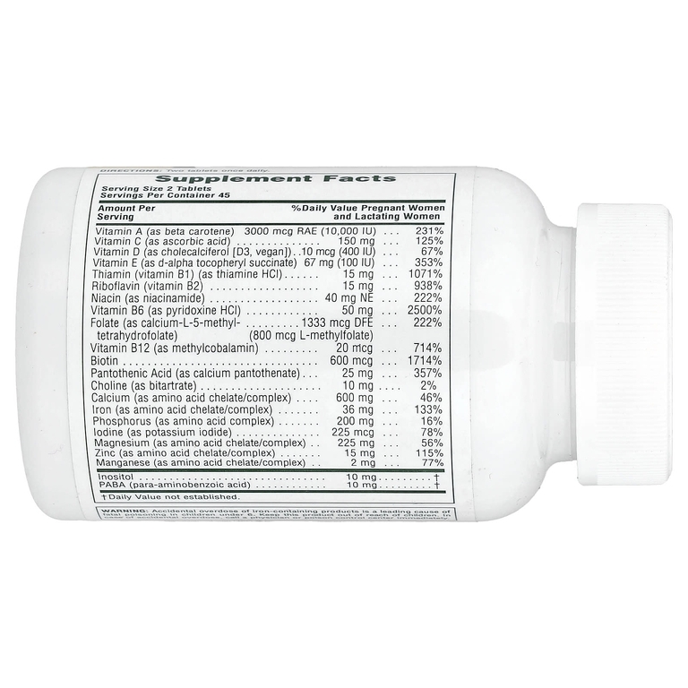 | Фолат (в виде L-5-метилтетрагидрофолата кальция): | 1333 мкг DFE (800 мкг L-метилфолата) |