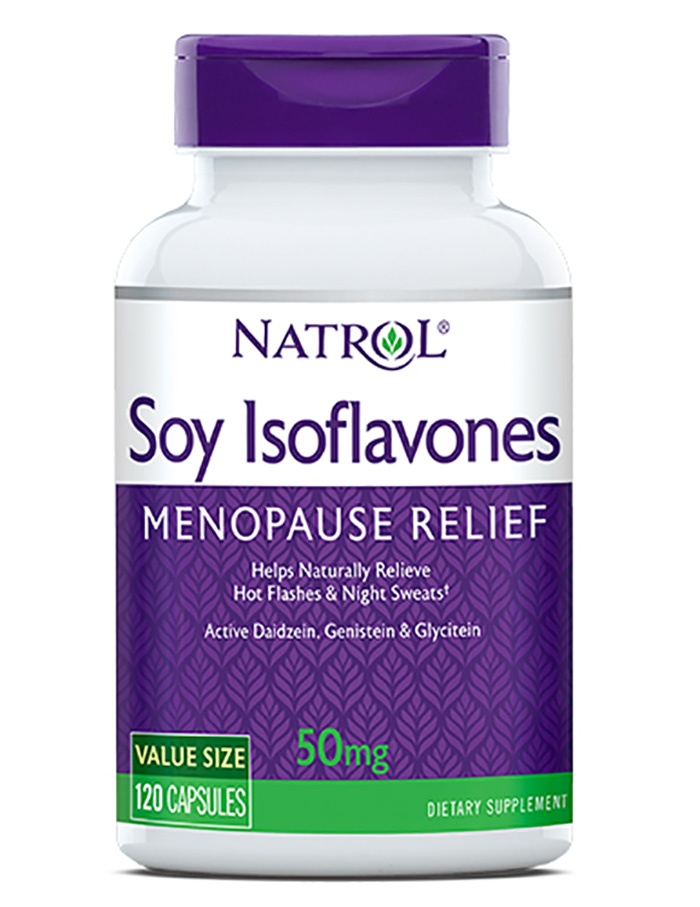 Soy Isoflavones Natrol — это женская пищевая добавка, предназначенная для облегчения периода менопаузы путем уменьшения приливов жара и ночного потоотделения.