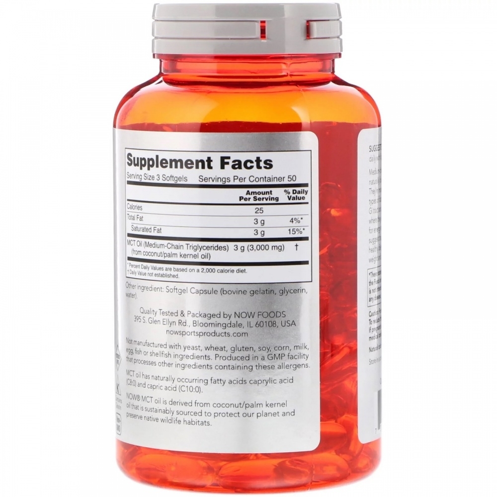 Интернет-магазин Body-Pit.Life предлагает купить Масло NOW MCT Oil 1000 мг 150 капсул в Нерюнгри.