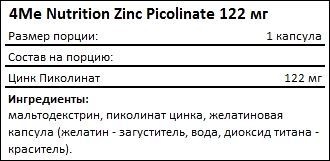 Витамины 4ME Nutrition Zinc Picolinate 122 мг 60 капсул