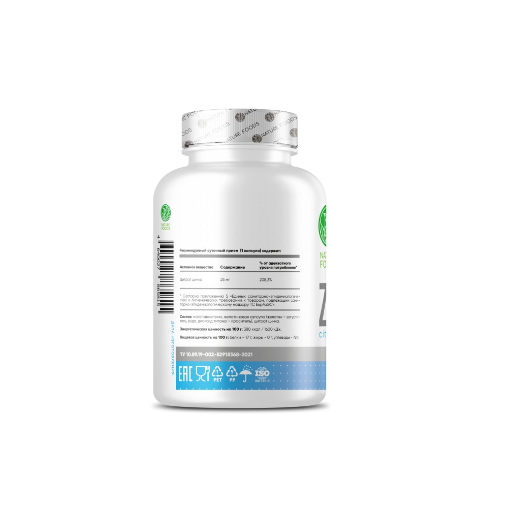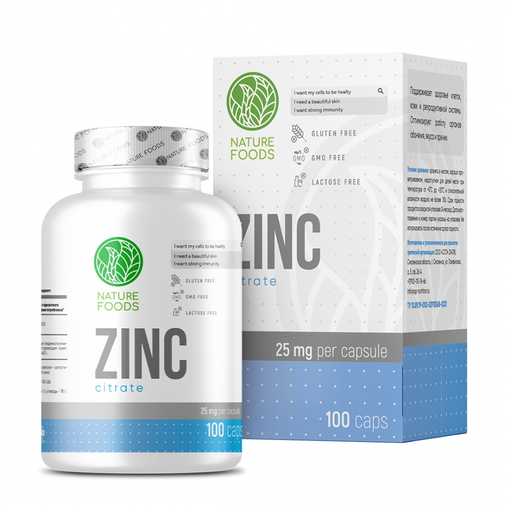 Интернет-магазин Body-Pit.Life предлагает купить Витамины Nature Foods Zinc Citrate 25 мг 100 капсул в Нерюнгри.
