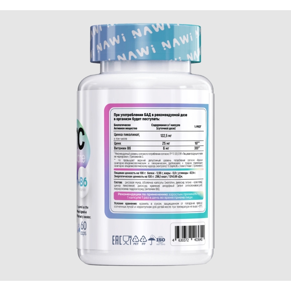 Витамины NAWI Zinc Picolinate + Vitamin B6 60 капсул