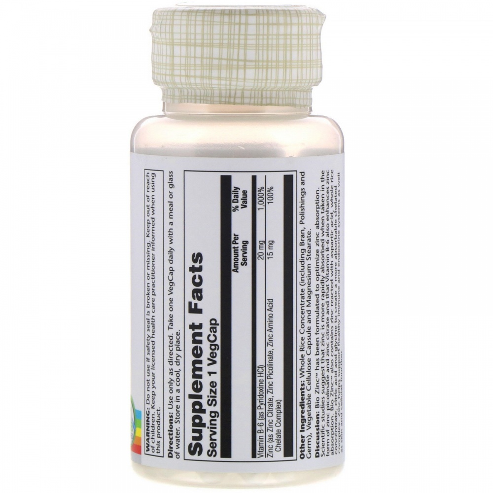 Bio Zinc был разработан для оптимизации усвоения цинка. Научные исследования показывают, что цинк быстрее усваивается в виде пикалината цинка и цитрата цинка, а витамин В-6 улучшает его всасывание. Комплекс Bio Zinc™ содержит цинк, вступающий в реакцию с аспартовой кислотой, цельный рисовый концентрат, лимонную кислоту и глицин для создания легко усваиваемого хелатного комплекса. Цинк помогает поддерживать нормальную работу иммунной и эндокринной системы, а также функцию кожи и клеток.