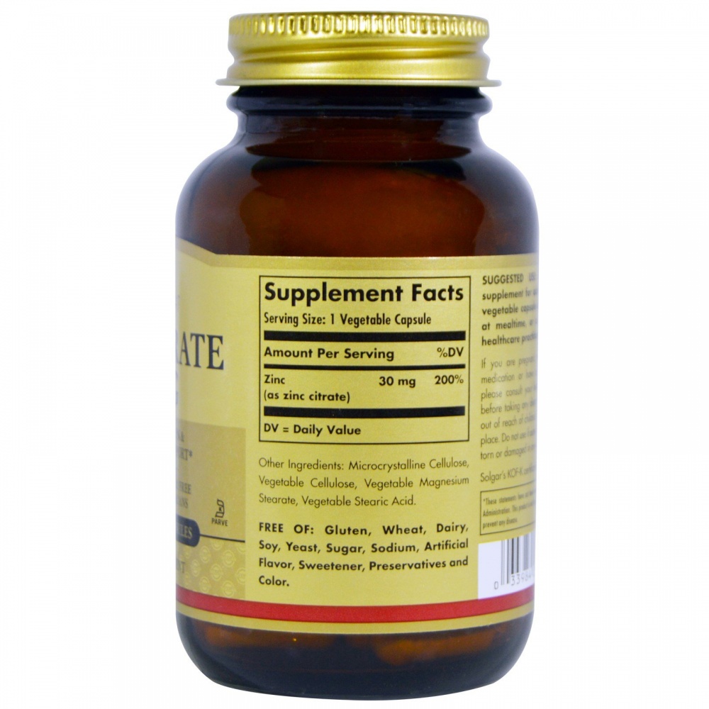 Витамины Solgar ZINC CITRATE 30 мг 100 капсул