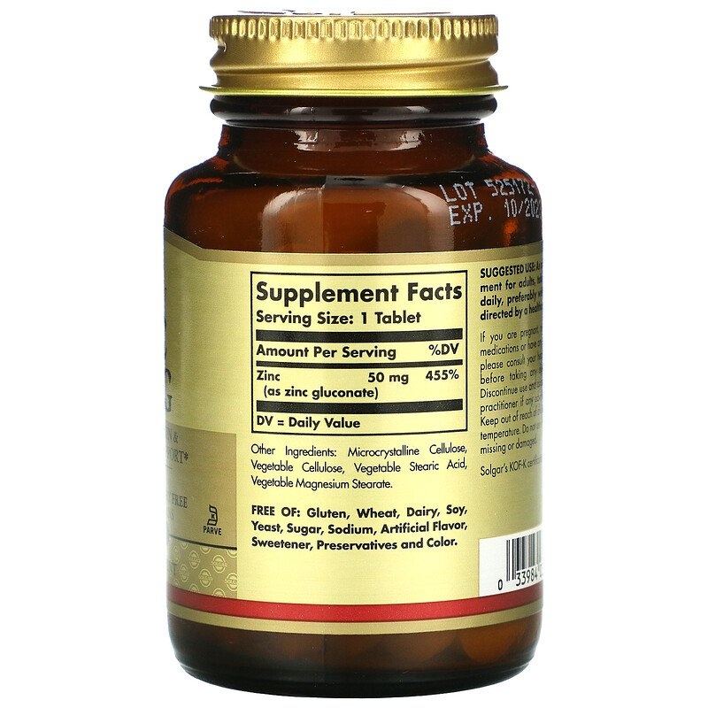 Витамины Solgar Zinc Gluconate 50 мг 100 таблеток