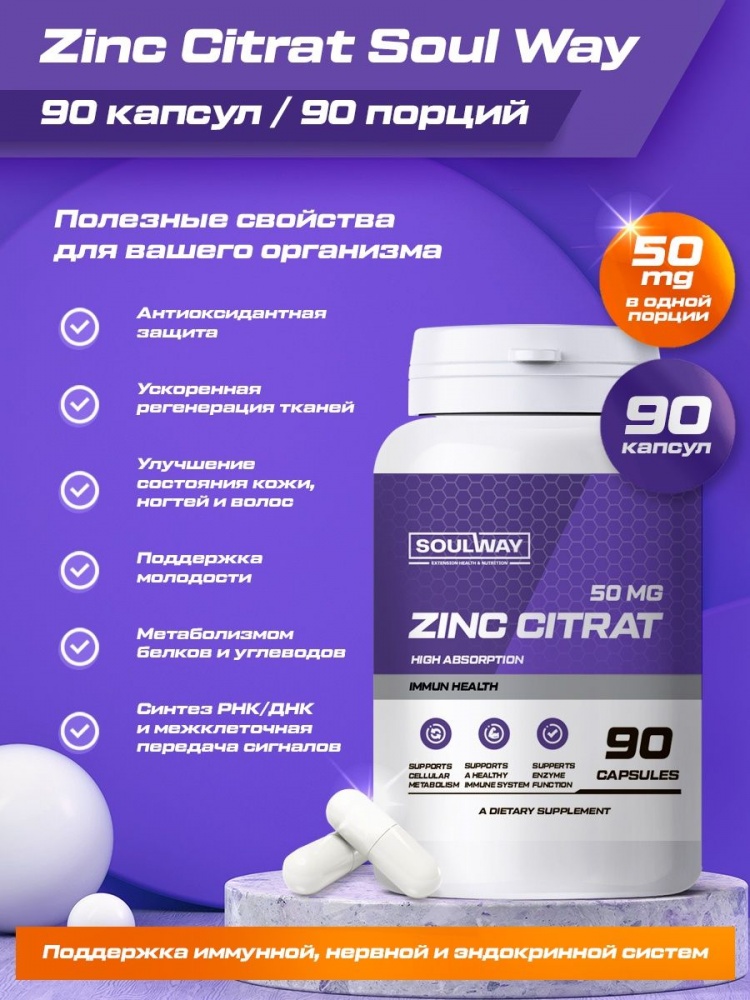 Интернет-магазин Body-Pit.Life предлагает купить Витамины SoulWay Zinc 50 мг 90 капсул в Нерюнгри.